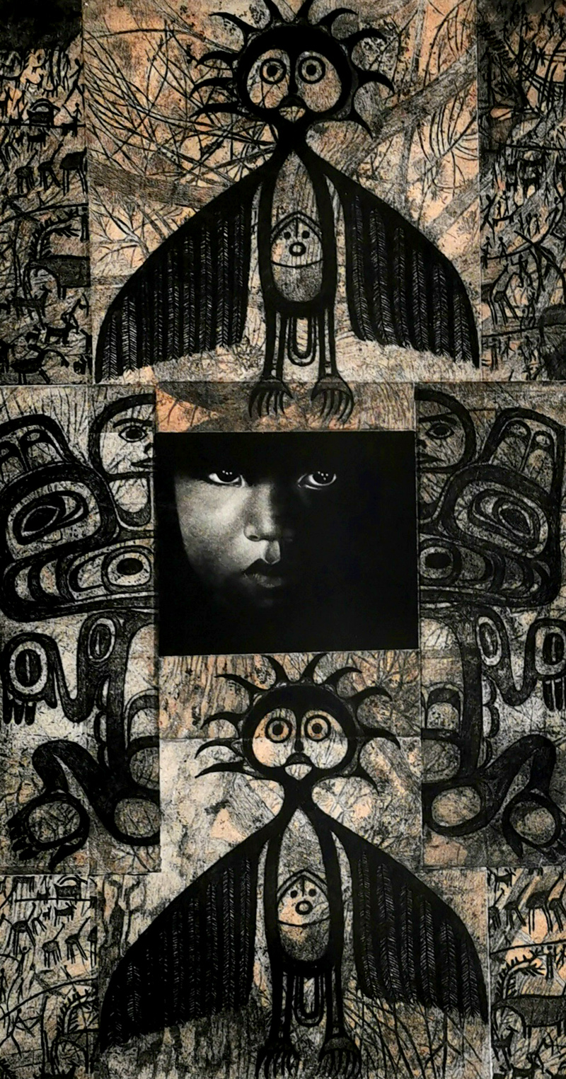 Oiseau totem à Ottawa ... (manière noire et eau forte)